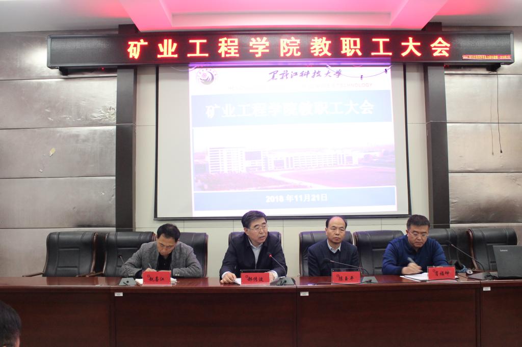 最后,校长郝传波作了重要讲话,他充分肯定了学院党政领导班子尤其是在学院院长空缺期间在人才培养、专业认证、矿业馆建设、学科评估等各项工作所取得的成绩。他指出,肖福坤同志思想政治觉悟高,工作敬业负责,熟悉矿业工程学科国内外前沿知识,在行业内影响力较大,任命肖福坤同志为beat365亚洲版官网院长是着眼于学校全局,对学校和beat365亚洲版官网的发展都有重要意义。对学院新党政班子及职工,他提出三点意见。一是要加强政治建设,进一步提高政治站位,认真学习贯彻习近平新时代中国特色社会主义思想,强化“四个意识”,坚定“四个自信”。二是要讲团结加强班子建设,要善于提高班子的领导水平,调动广大师生员工的积极性,在思想上同向,在行动上同心,树立团结务实班子的好形象。三是要加强廉洁自律,要时刻保持清醒头脑,在其位谋其政,要认真学习贯彻《中国共产党廉洁自律准则》和《中国共产党纪律处分条例》,带头自我约束,慎私、慎权、慎威、慎独,以饱满的精神状态做好各项工作。他强调,beat365亚洲版官网近期要按照学校党政工作部署,做好庆祝改革开放40年系列活动,开展思想大讨论,转变观念,结合习近平在全国教育大会上的讲话精神,理解“以本为本,四个回归”的深刻内涵。各专业要密联系行业,面向社会、开门办学,服务地方经济建设,拓展对外合作;要进一步按专业认证的要求重新修订好人才培养方案;进一步加强学院的内涵建设,不断提高学科专业建设水平和人才培养质量,向学校党委和全院师生交出一份令人满意的答卷。