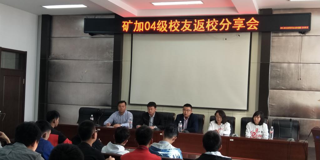 会上,4名校友分析了矿加专业当前时期的行业内形式和未来发展趋势,讲述了各自在学生时期和工作后的主要事迹。分别从深学企业文化、做好本职工作、遇事不慌,处事周全、学习能力培养、未来就业去向等方面分享了自己的经验,鼓舞与会同学们要在今后的生活中,“扬长避短、扬长补短”,不断提升自身优势和学习能力,要树立“依矿业而学、为矿业所用、做一生矿业人”。