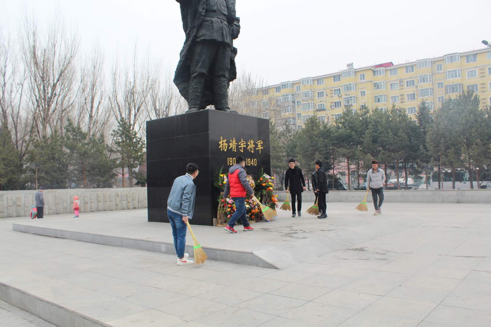 在高大肃穆的杨靖宇将军塑像前,学生们向革命先烈敬献花篮、默哀致悼、发表演讲,表达了对烈士的无比敬仰和怀念之情。