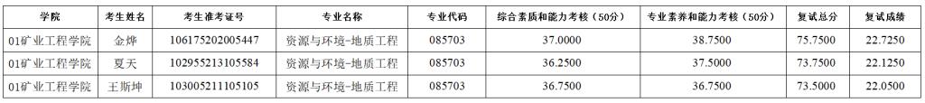 beat365亚洲版官网2025年硕士研究生招生考试(资源与环境-地质工程)第五次调剂待录取名单