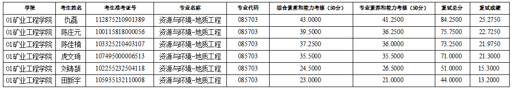 beat365亚洲版官网2025年硕士研究生招生考试(资源与环境-地质工程)第四次调剂待录取名单