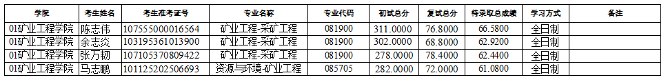 beat365亚洲版官网2025年硕士研究生招生考试(矿业工程、资源与环境-矿业工程)第三次调剂待录取名单