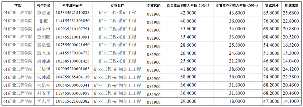 beat365亚洲版官网2025年硕士研究生招生考试(矿业工程)第二次调剂待录取名单