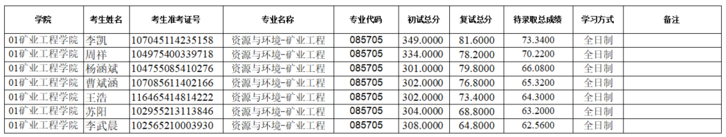 beat365亚洲版官网2025年硕士研究生招生考试(资源与环境-矿业工程)第二次调剂待录取名单