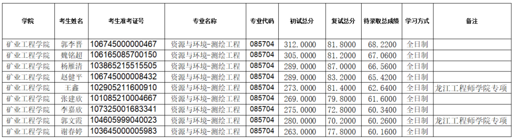 beat365亚洲版官网2025年硕士研究生招生考试(资源与环境-测绘工程)第一次调剂待录取名单