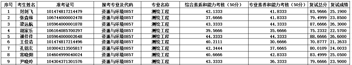 beat365亚洲版官网2024年硕士研究生招生考试测绘工程专业第一次调剂复试待录取考生名单