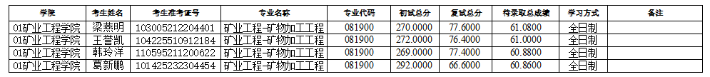 beat365亚洲版官网2025年硕士研究生招生考试(矿业工程)第五次调剂待录取名单