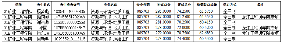 beat365亚洲版官网2025年硕士研究生招生考试(资源与环境-地质工程)第三次调剂及(资源与环境-测绘工程)第四次调剂待录取名单